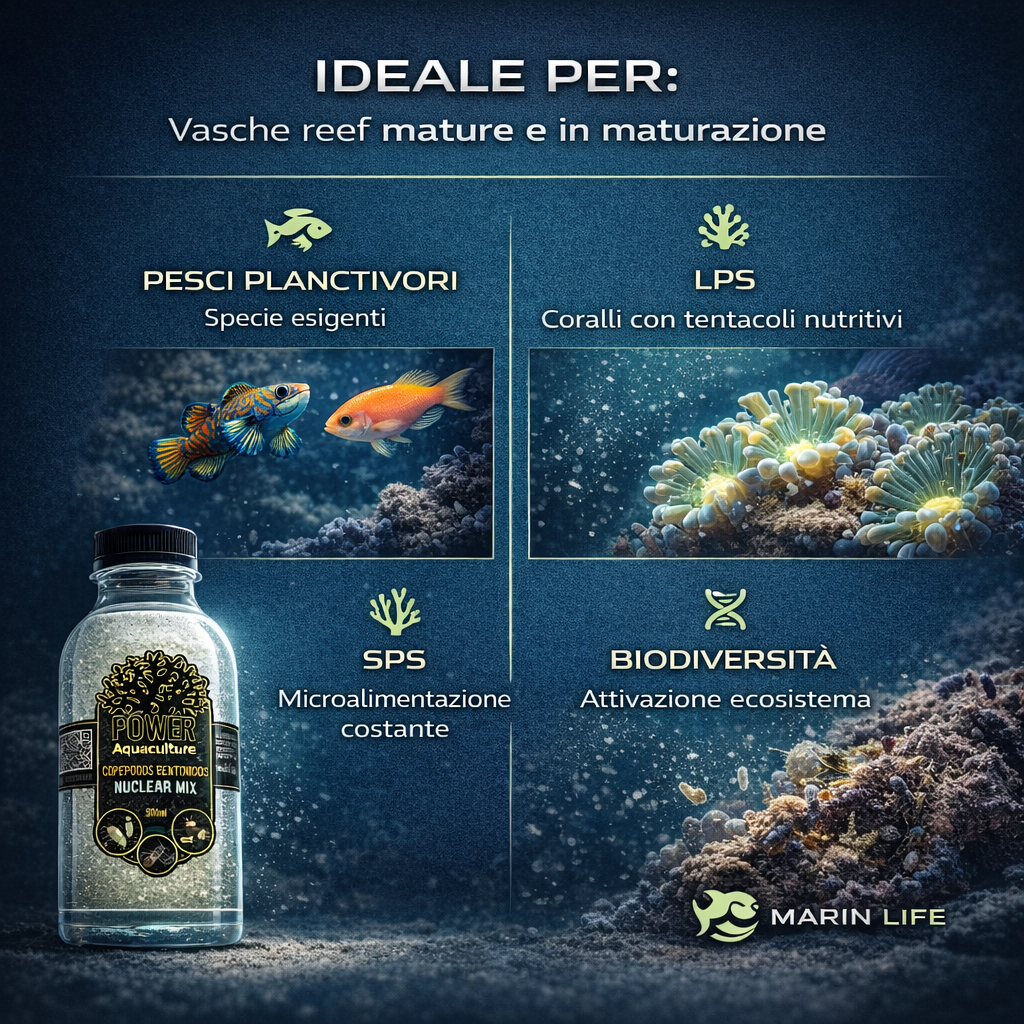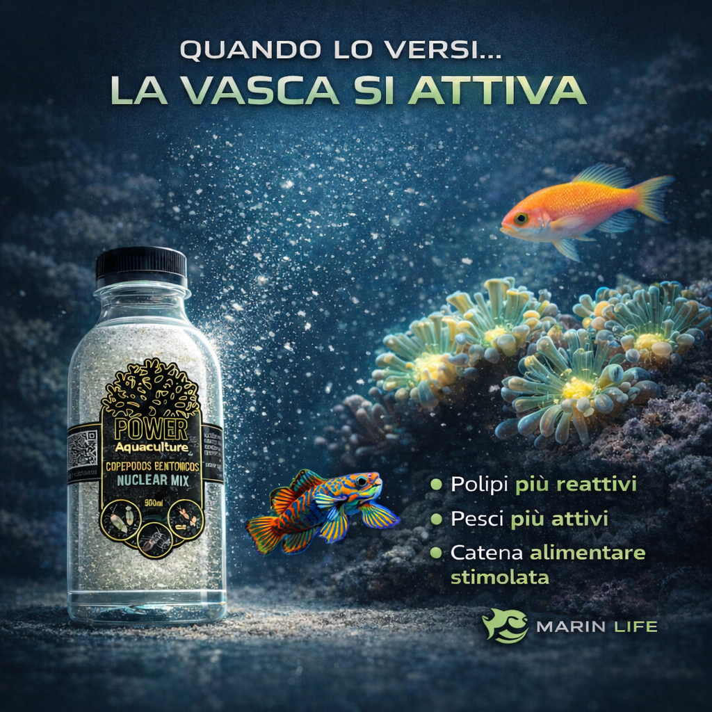 Fornisce una fonte massiccia di proteine vive per pesci esigenti (Mandarin, Synchiropus) e coralli SPS che necessitano di cattura planctonica costante.